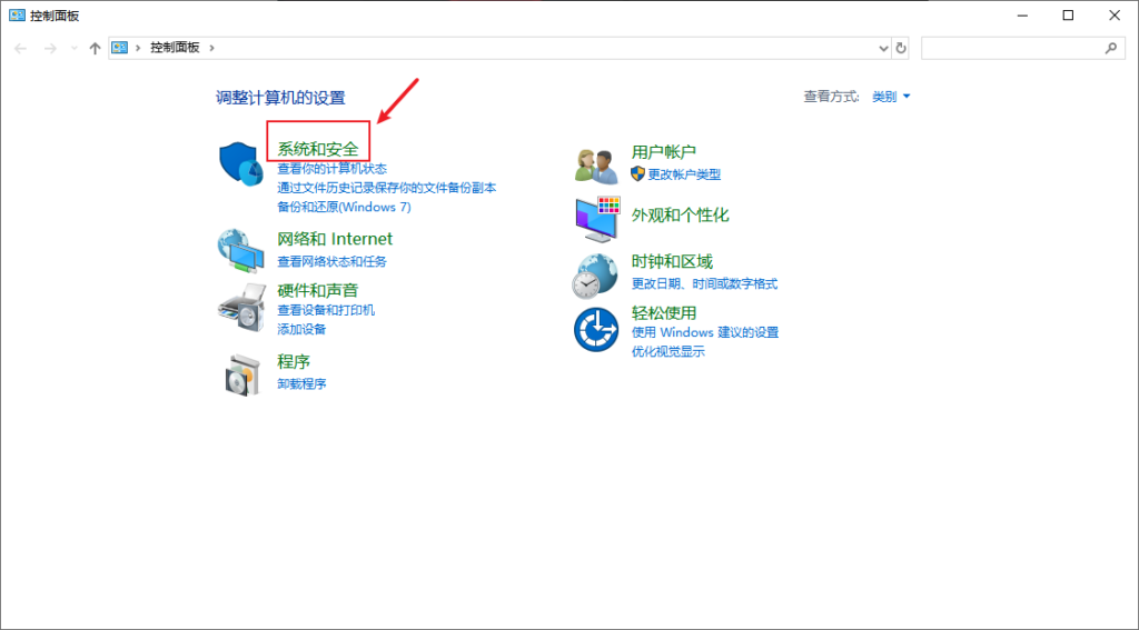 3、点击控制面板页面中的“系统和安全”: