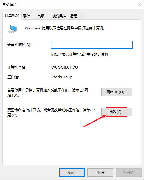 下图可以看到我这台电脑目前的计算机名是:WUOQIEUHDU。