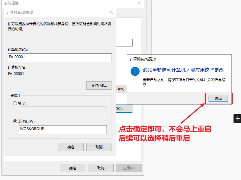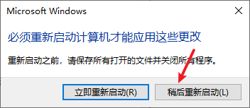 注意:这里点完”确定“会卡住转一会圈,并且成功重命名后会提示需要重启电脑。