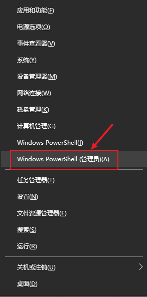 2、在弹出来的开始右键菜单栏中点击”Windows PowerShell(管理员)(A)“: