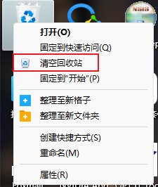 然后桌面找到回收站,右键清空回收站。