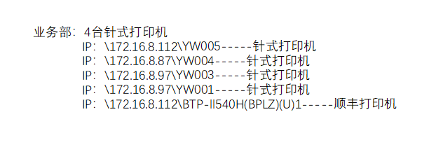 1、下图是业务部针式打印机或顺丰等标签机的主机地址与编号