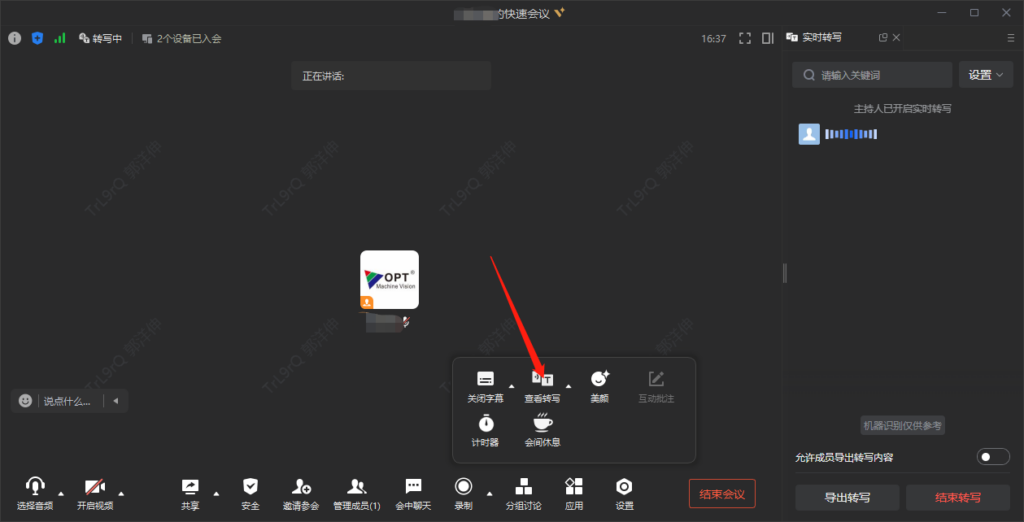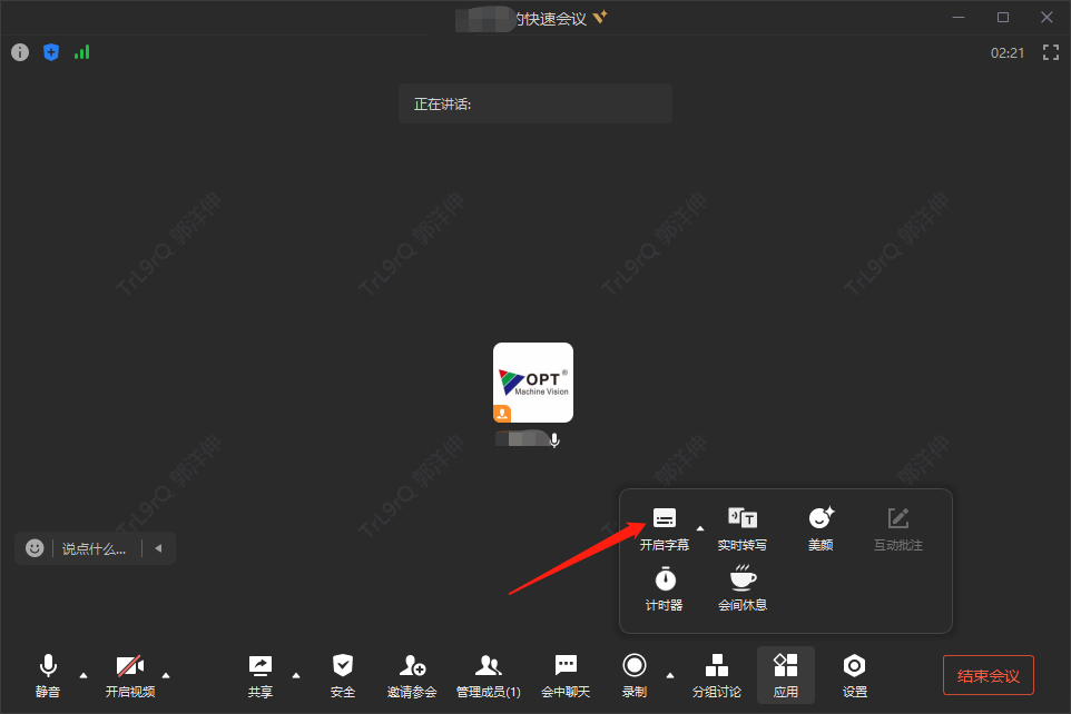 PS:字幕实时翻译功能属于高级权限,使用前先联络信息部开通权限(仅主持人)。