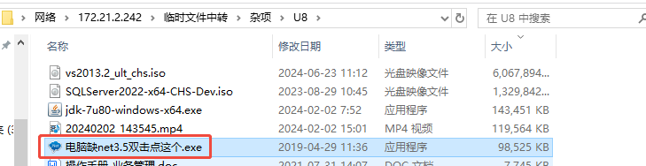 按路径进入共享文件夹\\172.21.2.242\临时文件中转\杂项\U8,以管理员身份运行下图中的软件