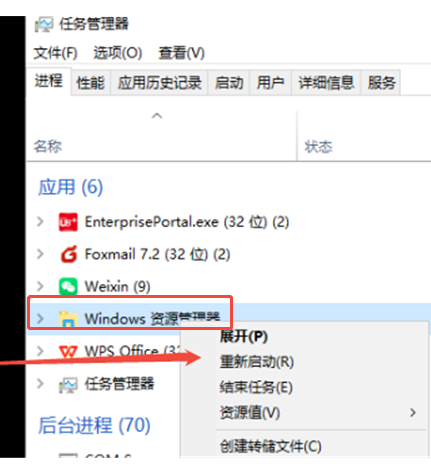 2、如果以上还不行,不能预览,再次进行重启资源管理器生效,有时不会及时生效。经过测试,一般这样操作后,就OK了