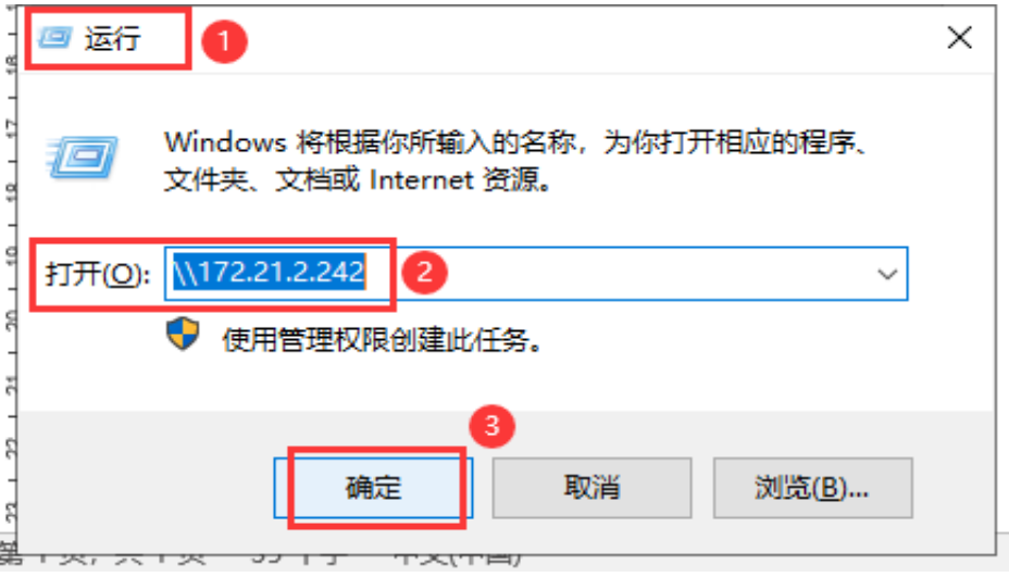1、桌面状态下按 win+R 键呼出运行窗口,填入共享服务器的地址 \172.21.2.242