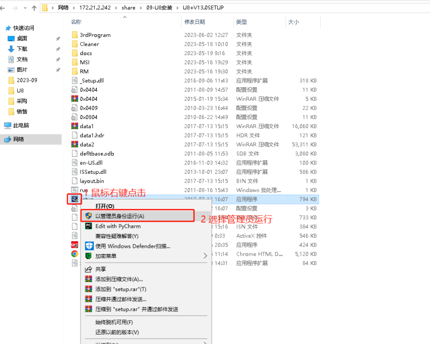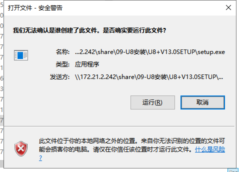 2、按照\172.21.2.242\share\09-U8安装\U8+V13.0SETUP路径打开文件夹