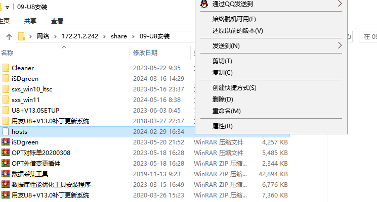 17、安装完毕后重启电脑,按照172.21.2.242\share\09-U8安装路径打开文件夹