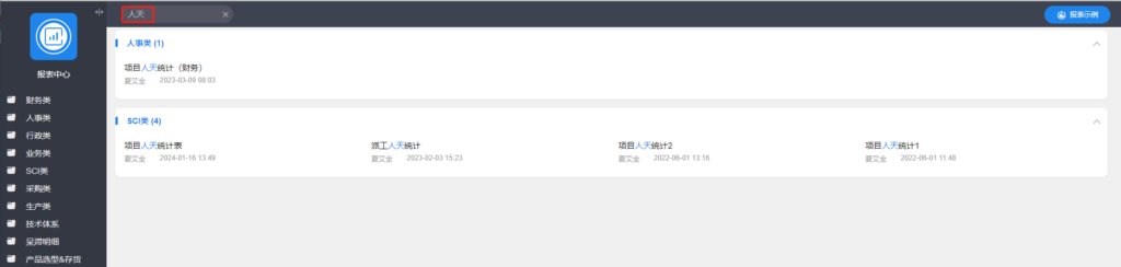 输入报表关键字进行搜索