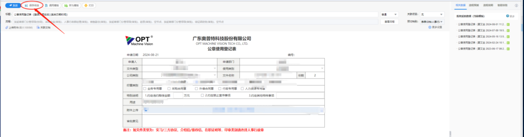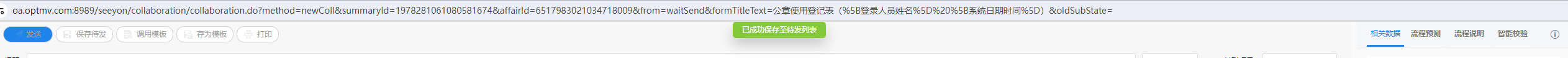 当发起一张单据,由于某些原因需暂存草稿时,可点击保存待发按钮