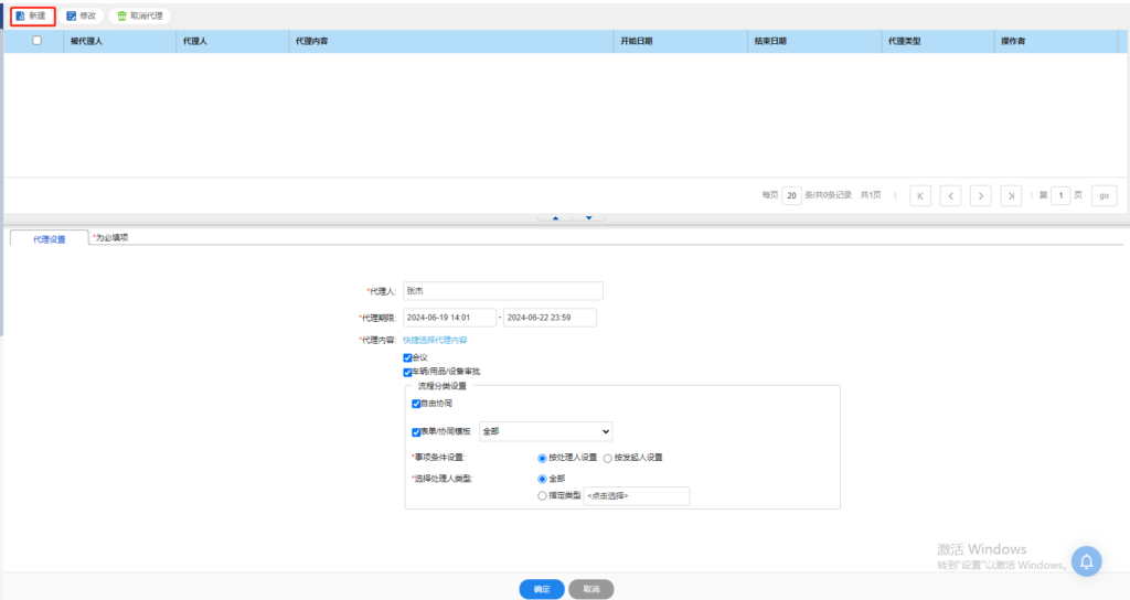 提示:如请假、工作临时调动、或其它原因需要设置代理人时