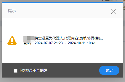 设置代理人或离职工作交接时,代理人会收到提醒