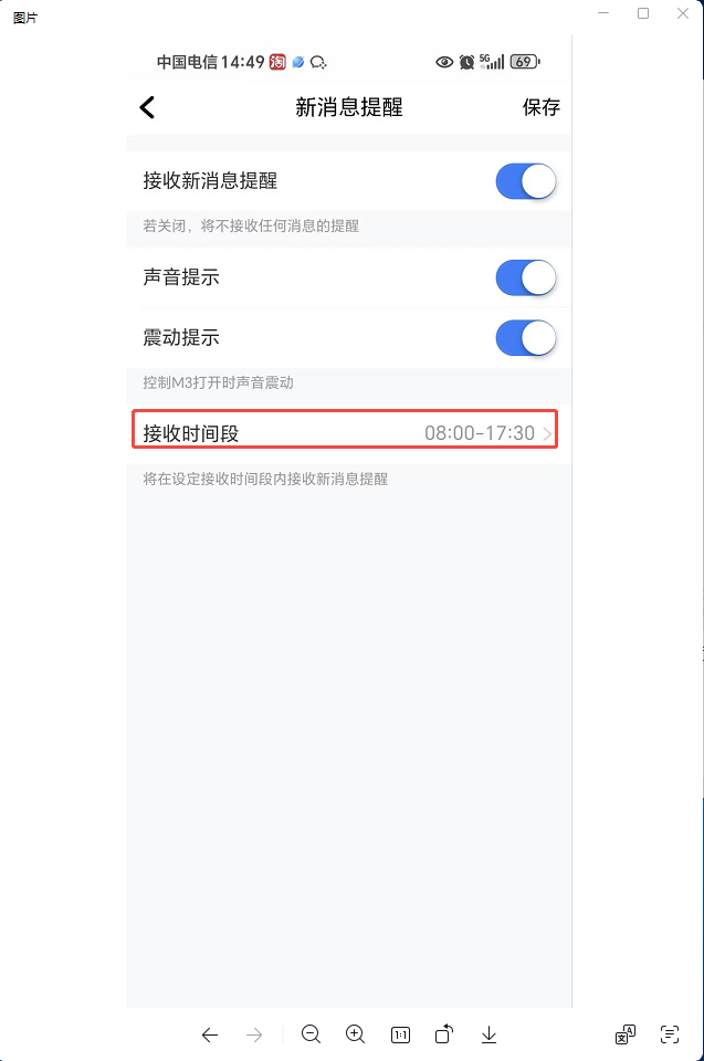 点击接收时间段(设置为工作时间)
