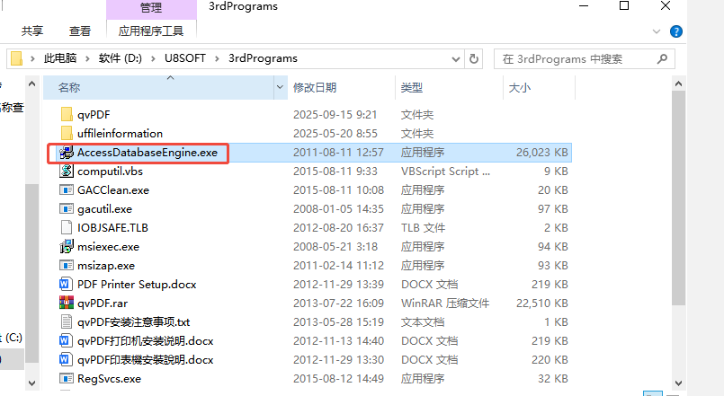 打开文件夹D:\U8SOFT\3rdPrograms,以管理员身份运行AccessDatabaseEngine.exe,重新安装